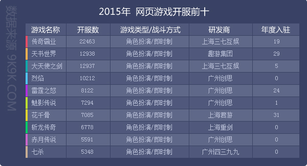据9K9K网页游戏数据中心统计优质平台年度总开服255541组(不包括腾讯页游)